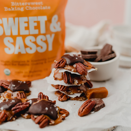 - Line 8"x8" square baking pan with parchment paper.